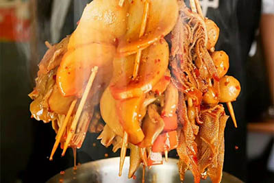 對于嘴刁的人來說,就算有一大碗美味的過橋米線也是不夠的,這家的冷串可少不了。十秒到過橋米線店內也售賣著不少冷串串,在柜臺區域,可以在點單時,順便點幾根串串。在辣油里一浸,這樣的辣才叫到位,就是辣刺激舌頭味蕾的感覺。