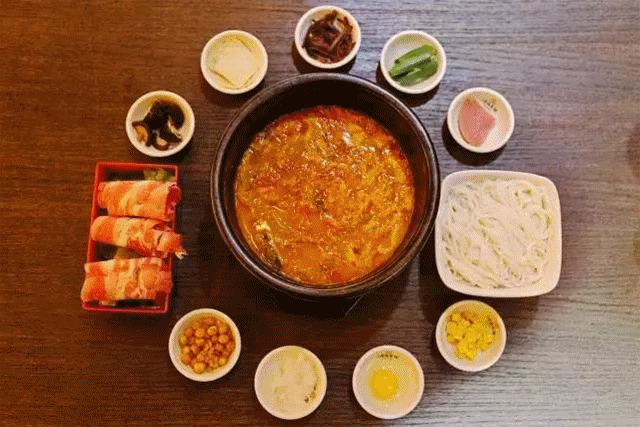 精心熬制的泡菜湯底,在砂鍋里微沸,肥牛片與米線、其他食材都規整的盛放在擺盤內的小碟子里。泡菜湯底帶有微微的紅,飄著絲絲的酸辣香氣,聞一下就引人入勝。十秒到過橋米線最講究的就是食材如何下鍋,米線想要軟嫩柔滑,就要掌控好下鍋的時間和次序,一般來說,米線最晚下鍋,下鍋1分鐘左右食用最 好。
