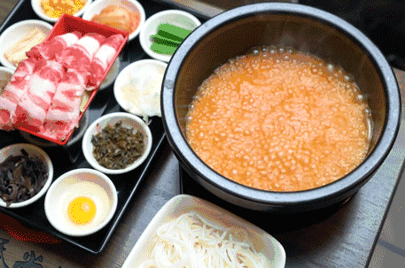 這款金湯米線湯底是用老母雞熬制的秘制雞湯,雞湯的顏色呈現(xiàn)金黃色,湯的口感非常細膩,熬制的功夫也非常到位。但不要被它的外觀所欺騙,金湯湯底的熬制加了秘制的辣醬,吃起來更是酸爽辣勁足!